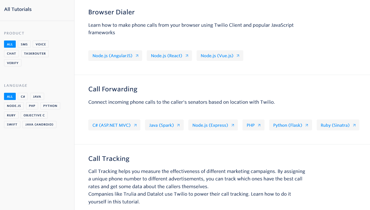 Twilio displays some of those use cases on its homepage.