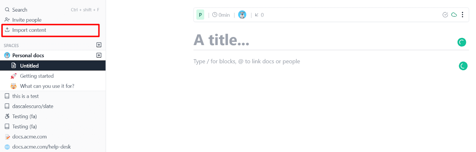 When a writer wants to start working in Archbee, they can create a draft in the Personal docs Space, which no one else in the team can access.
