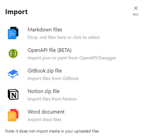 Also, you can import files from GitBook, Notion, or OpenAPI/Swagger.