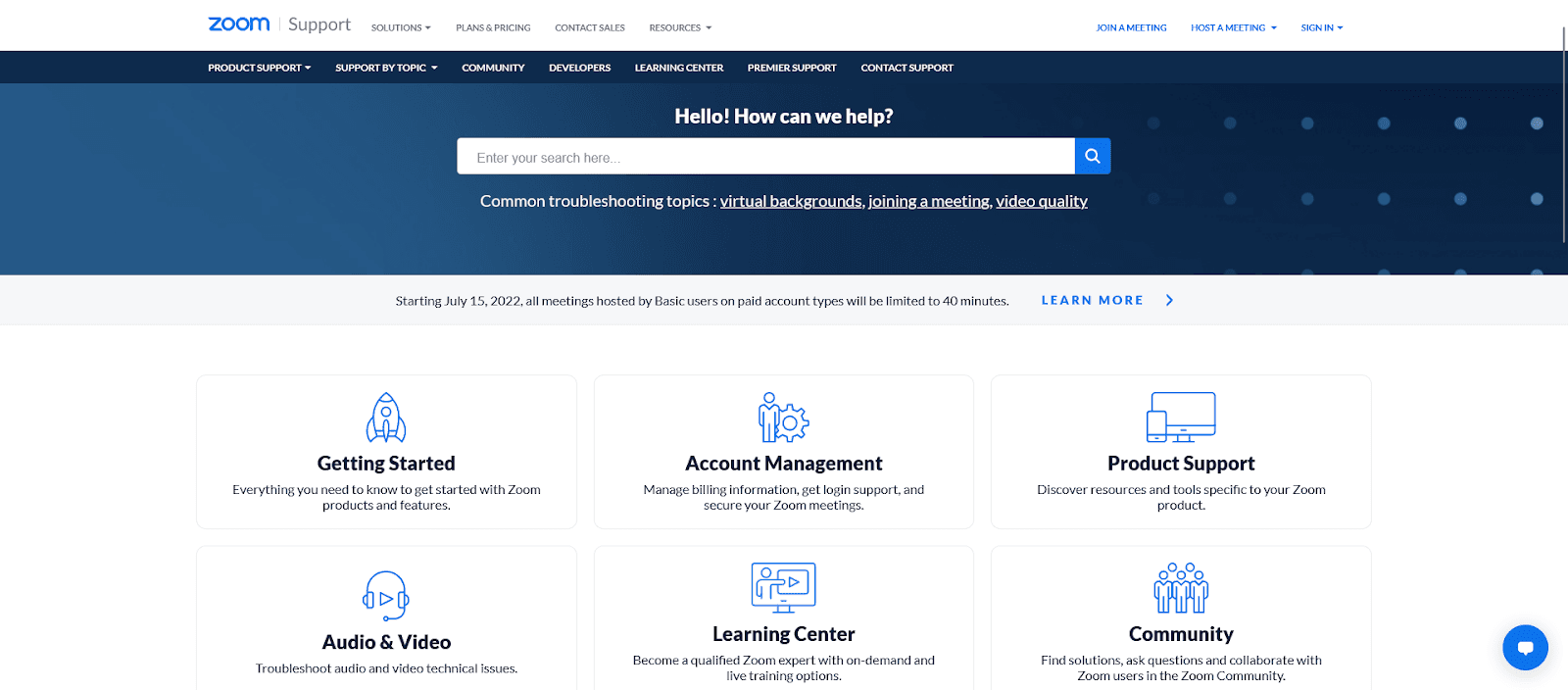 Even if customers don’t like to dig through documentation, they can look for a tutorial video on many of Zoom’s features.