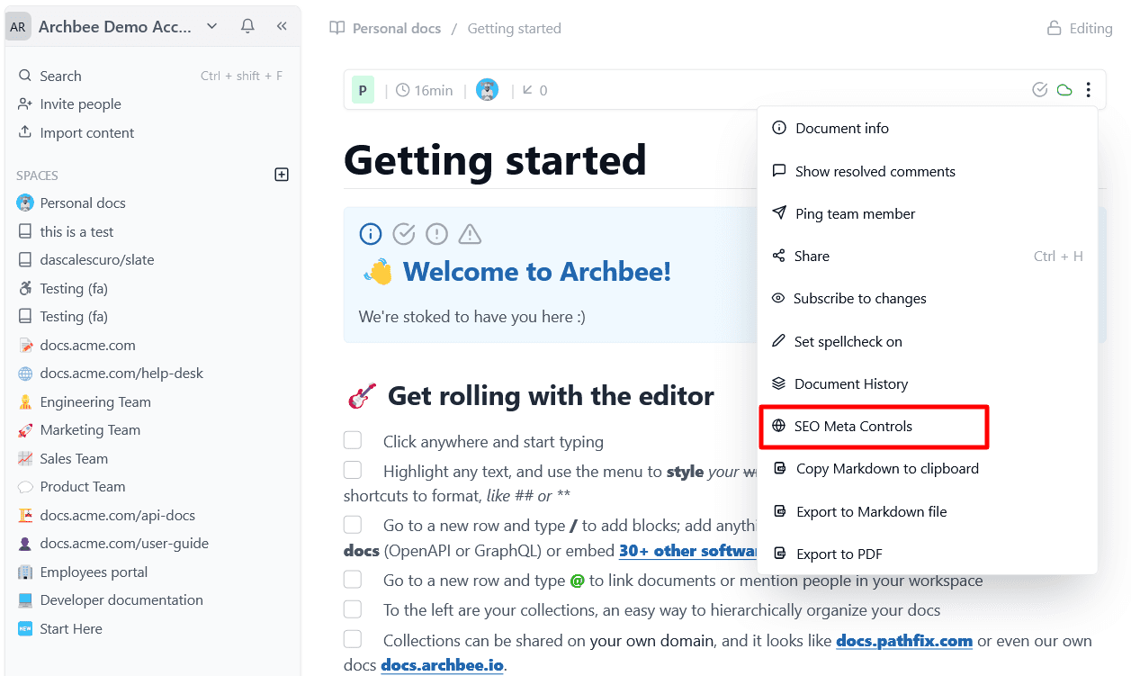 If you create your documentation in Archbee, you can control its SEO meta attribute to improve SEO performance.