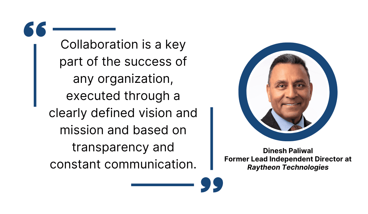 Dinesh Paliwal, the former Lead Independent Director at Raytheon Technologies, emphasized some key points: