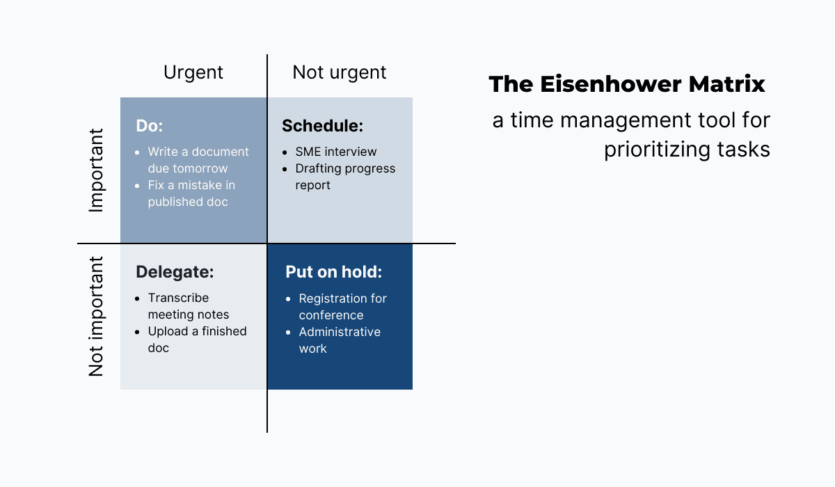 And even though technical writing is notoriously deadline-intensive, smart task ordering and prioritization should help keep you on track.