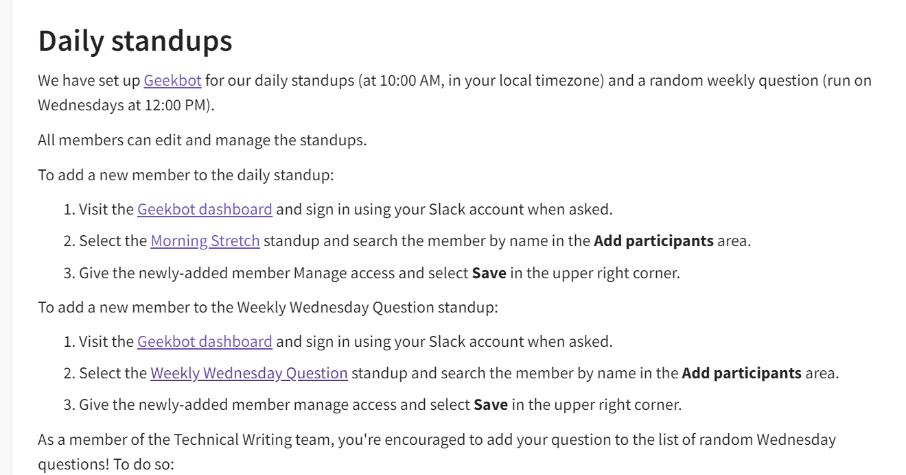 But it’s also good to note that this gives your team members a chance to step into the user’s shoes and approach the documentation from their perspective.