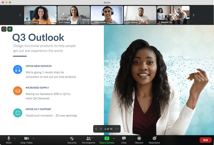 You can use video conferencing features of your communication app (such as Slack), or stand-alone software such as Zoom.