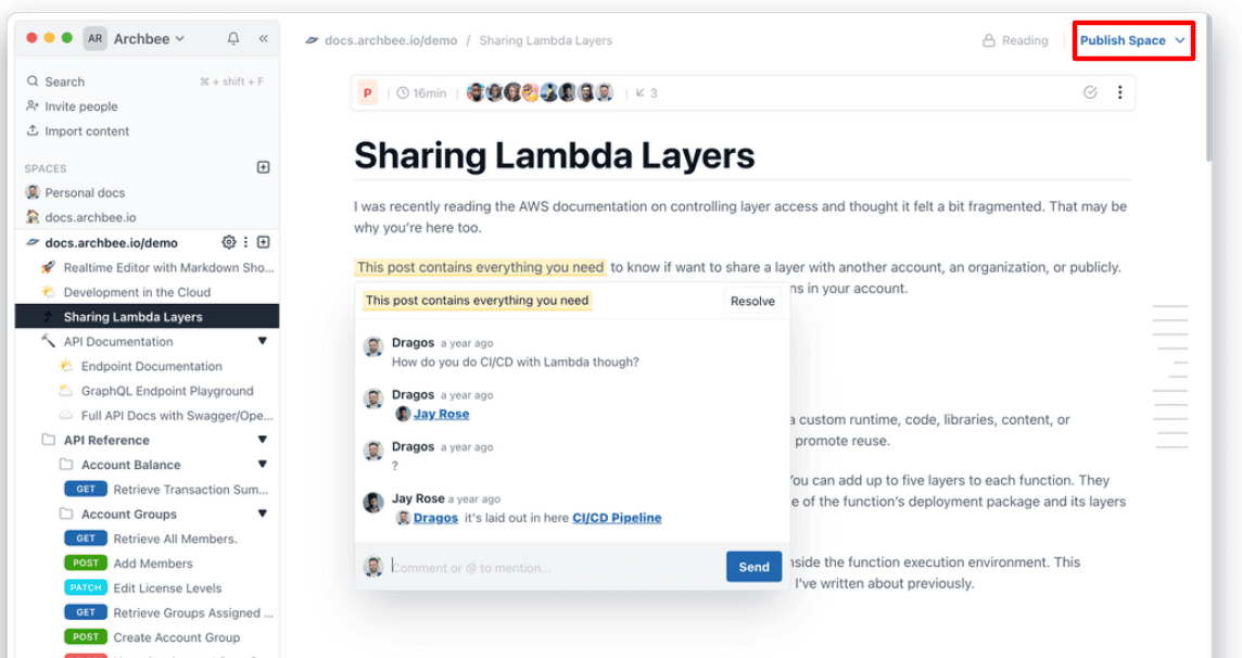 This interaction can come in the form of in-line comments if you're using ordinary word processors or chat on docs features if you’re using advanced documentation software like Archbee.