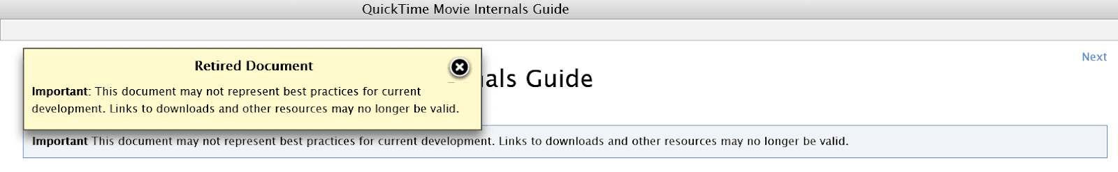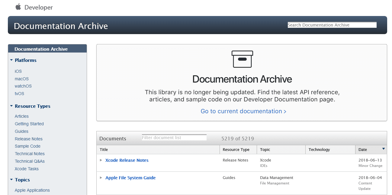 Here’s how Apple does that with a clearly visible message for the users on the top of the main documentation page: