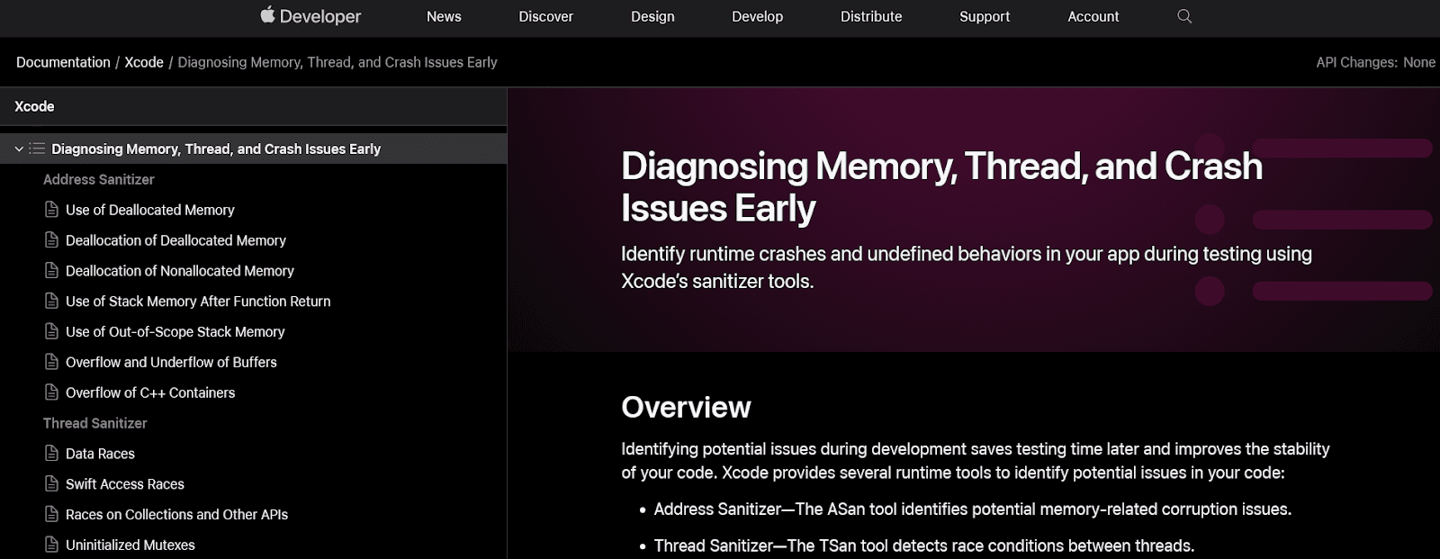 So, for instance, in the subsection about locating memory corruption issues in your code, they explain what tool to use, how to enable it, which flags to use from the command line, and how the tool works.
