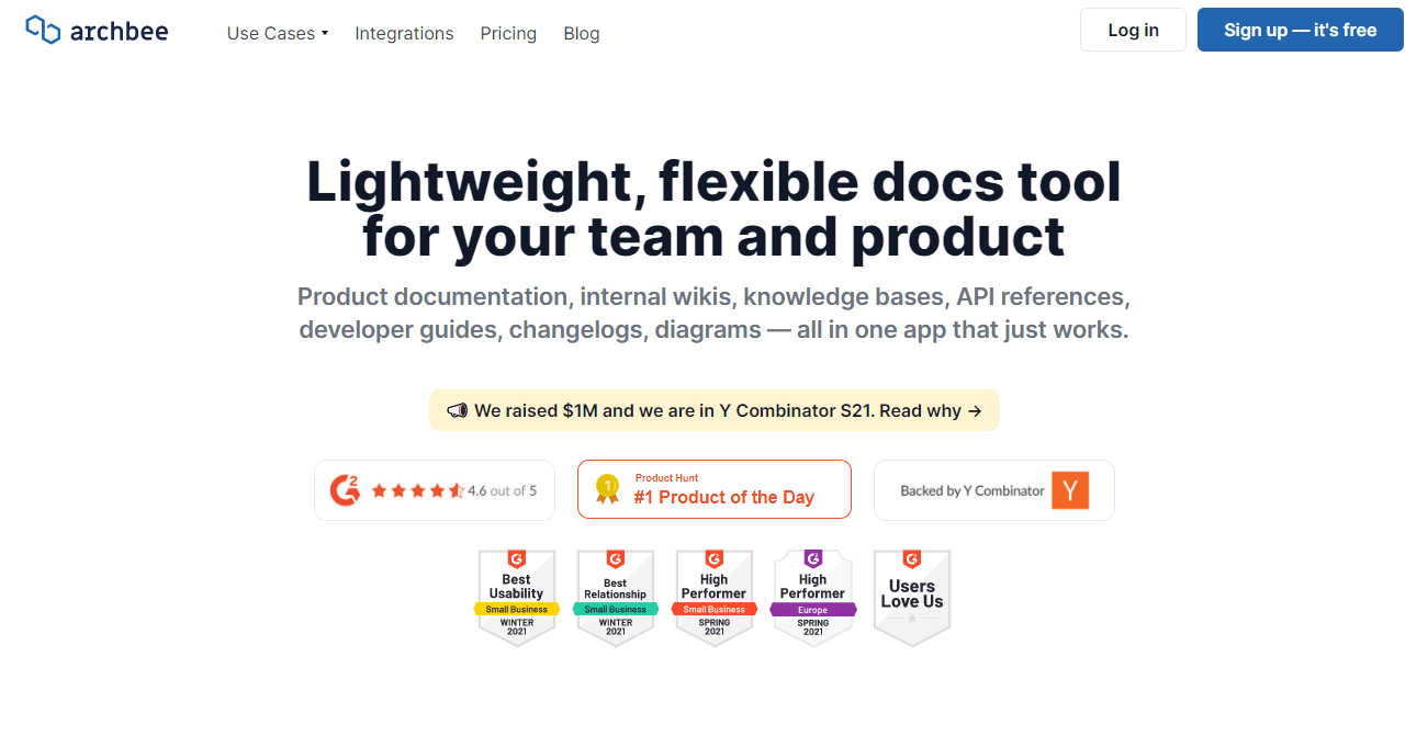 Our company, Archbee, offers a team and product knowledge all in one place. Using the block-based editor, you can create internal wikis and knowledge bases, product documentation sites, or developer and API documentation.