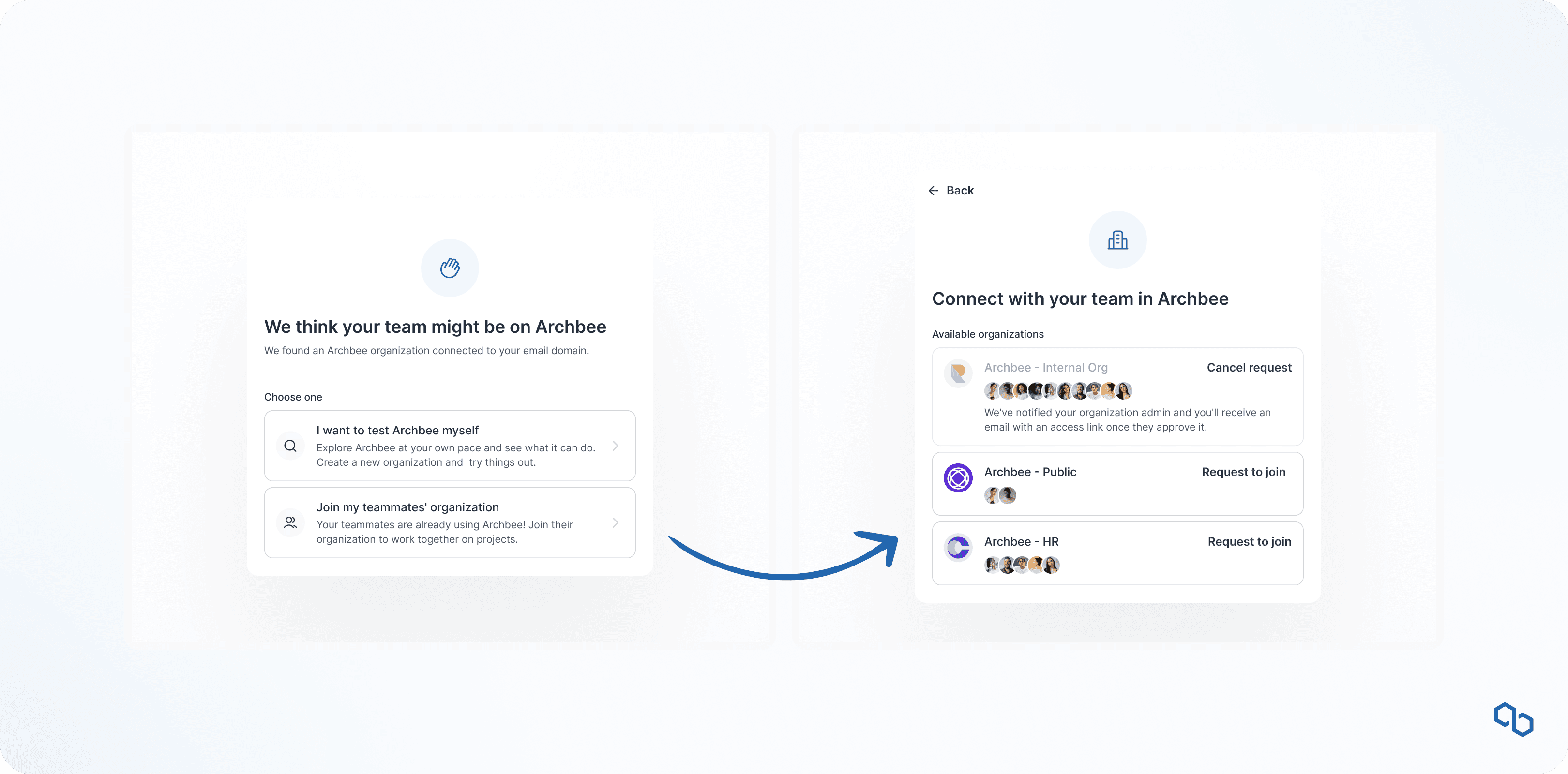 Based on your signup email domain, we can now detect if there's an organization waiting for you to join. Ask to join, get approved by admin, then start contributing to your team’s documentation.