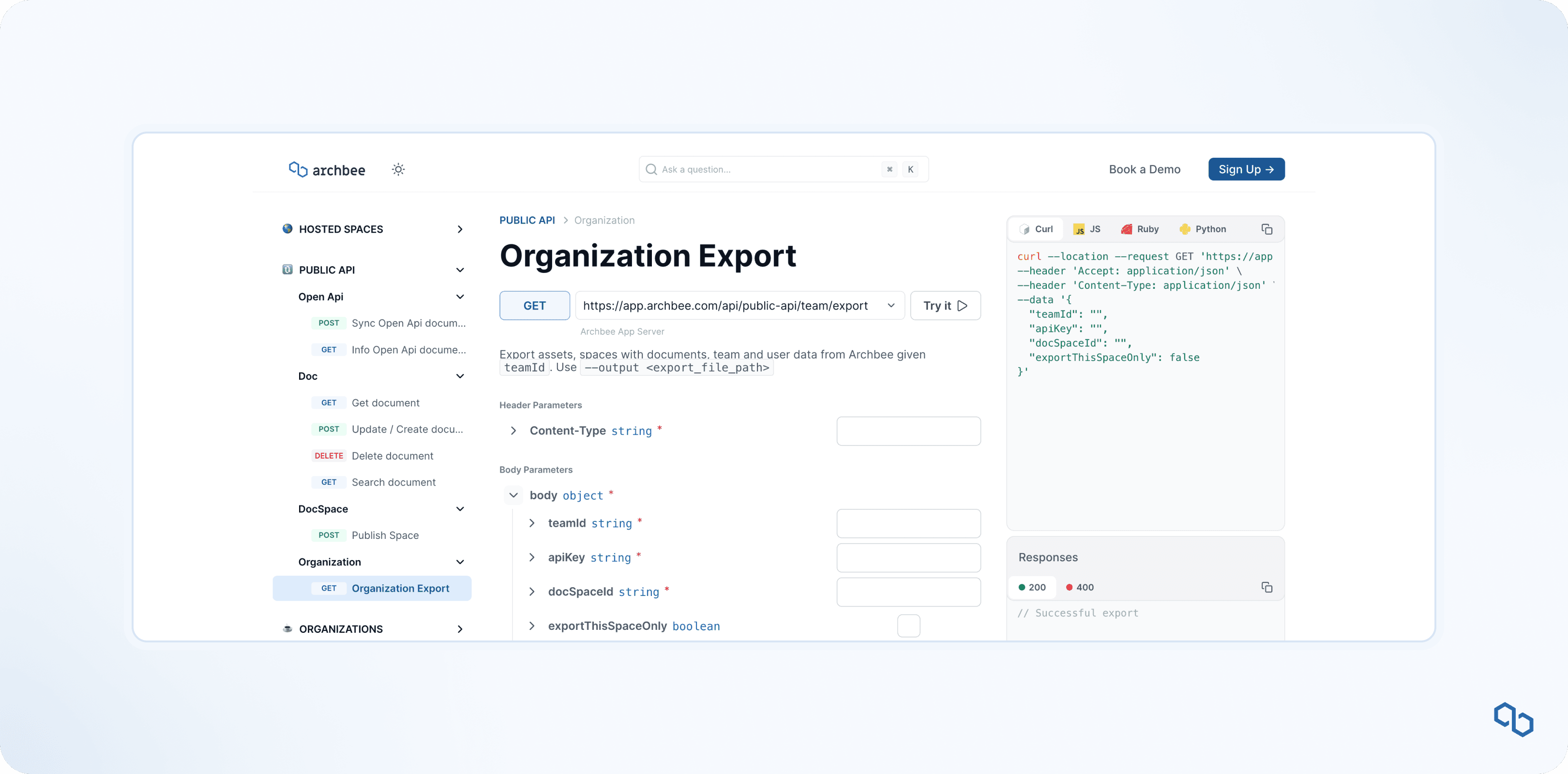 A new endpoint in our Public API that enables your team to backup your entire workspace via a simple API call.