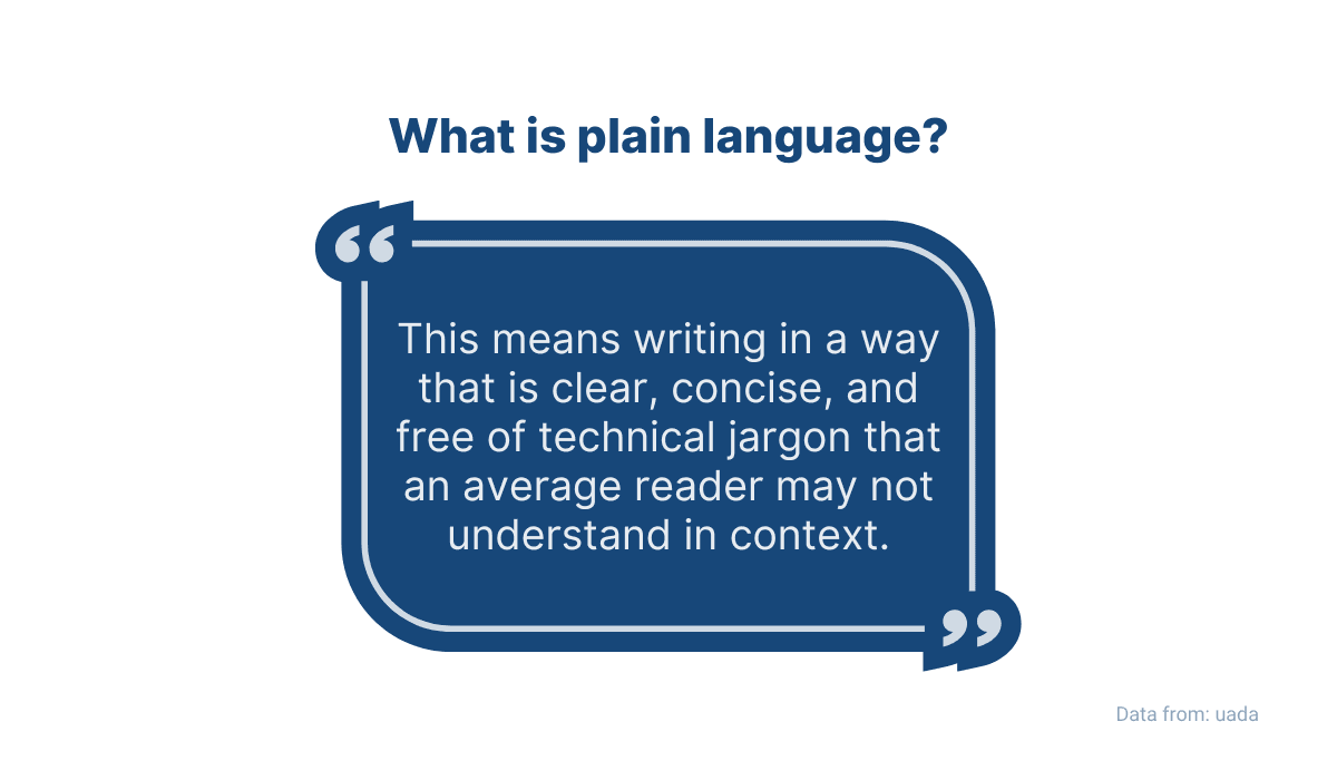 As you can see in the explanation from the University of Arkansas above, plain language puts emphasis on ease of comprehension.