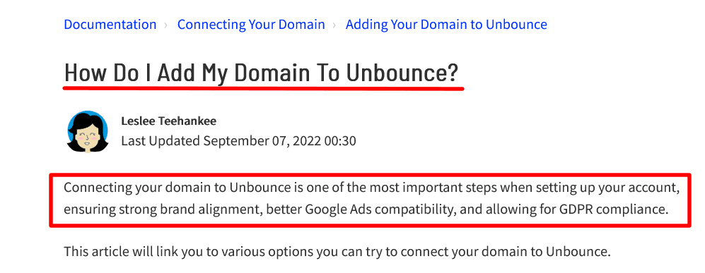 For example, Unbounce is an AI-powered landing page builder. It’s a complex software tool, but that doesn't mean that its documentation has to be difficult to understand.