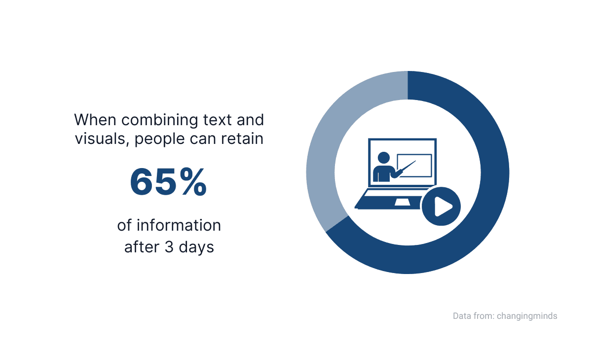 According to one study, including visuals in lessons significantly improved the learners’ ability to recall information three days after they received it.