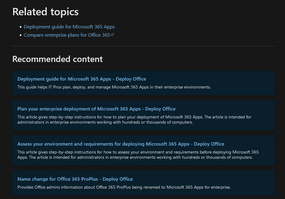 Let’s look at the example of the user documentation for Microsoft 365 Apps.