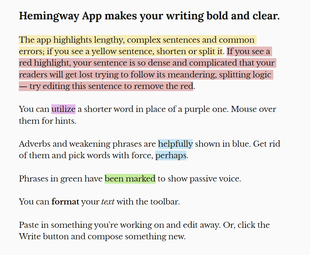 Another great tool that actually specializes in clarity and concise writing is the Hemingway App.