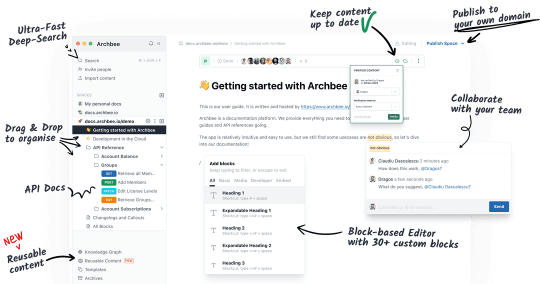 With Archbee, you can provide your users with an organized and practical resource of product information.