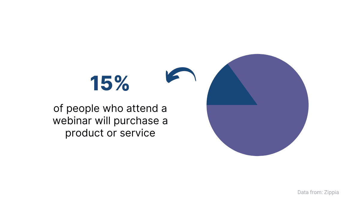 A testament to how effective webinars can be is a stat cited on Zippia. According to them, 15% of people who attend a webinar end up purchasing the related product.