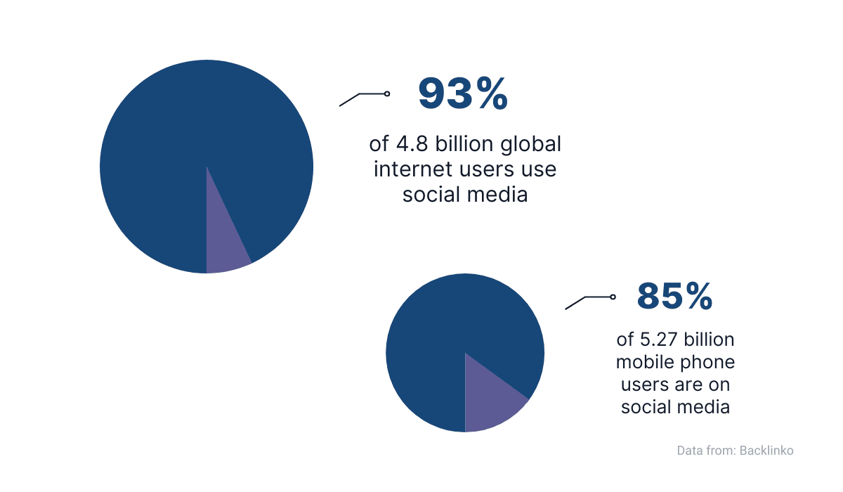 That’s especially interesting when you consider how many people use social media. According to Backlinko, 93% of global internet users and 85% of mobile phone users are on social media.