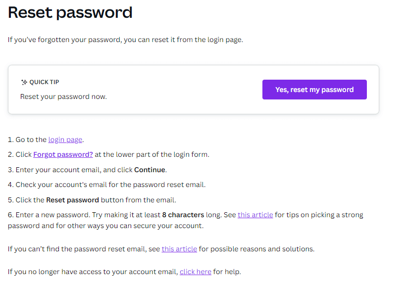 For example, Canva does this in their article on resetting passwords in their public knowledge base.