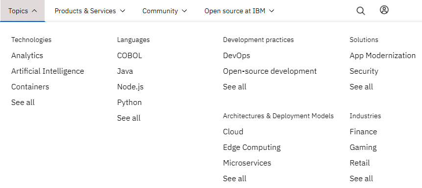 Let’s take IBM Developer as an example again because they also did a great job with navigation.