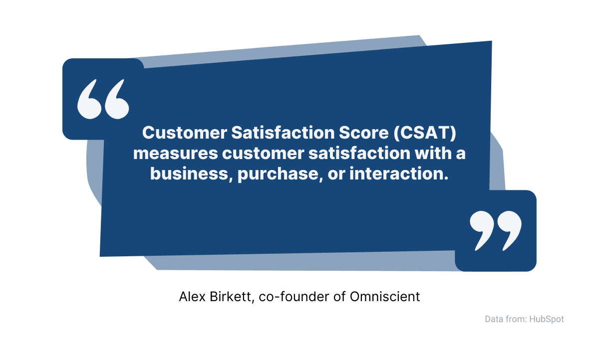 If you want to know how satisfied your customer is after interacting with a certain aspect of your product, you can use the Customer Satisfaction Score (CSAT).