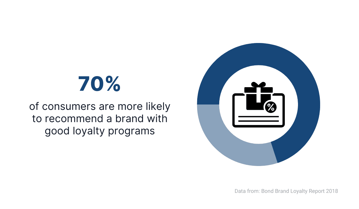According to The Loyalty Report, 70% of consumers will recommend a brand based on its loyalty program.