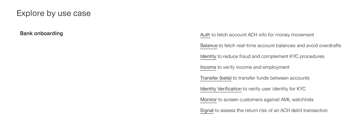 Let’s take a look at Plaid’s developer documentation landing page.