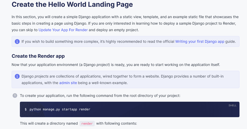 For example, Render has different quickstart guides for various programming languages and frameworks.