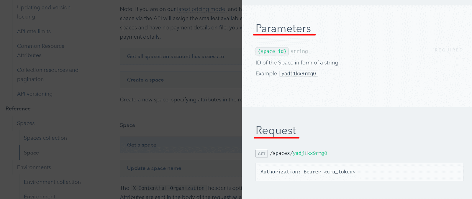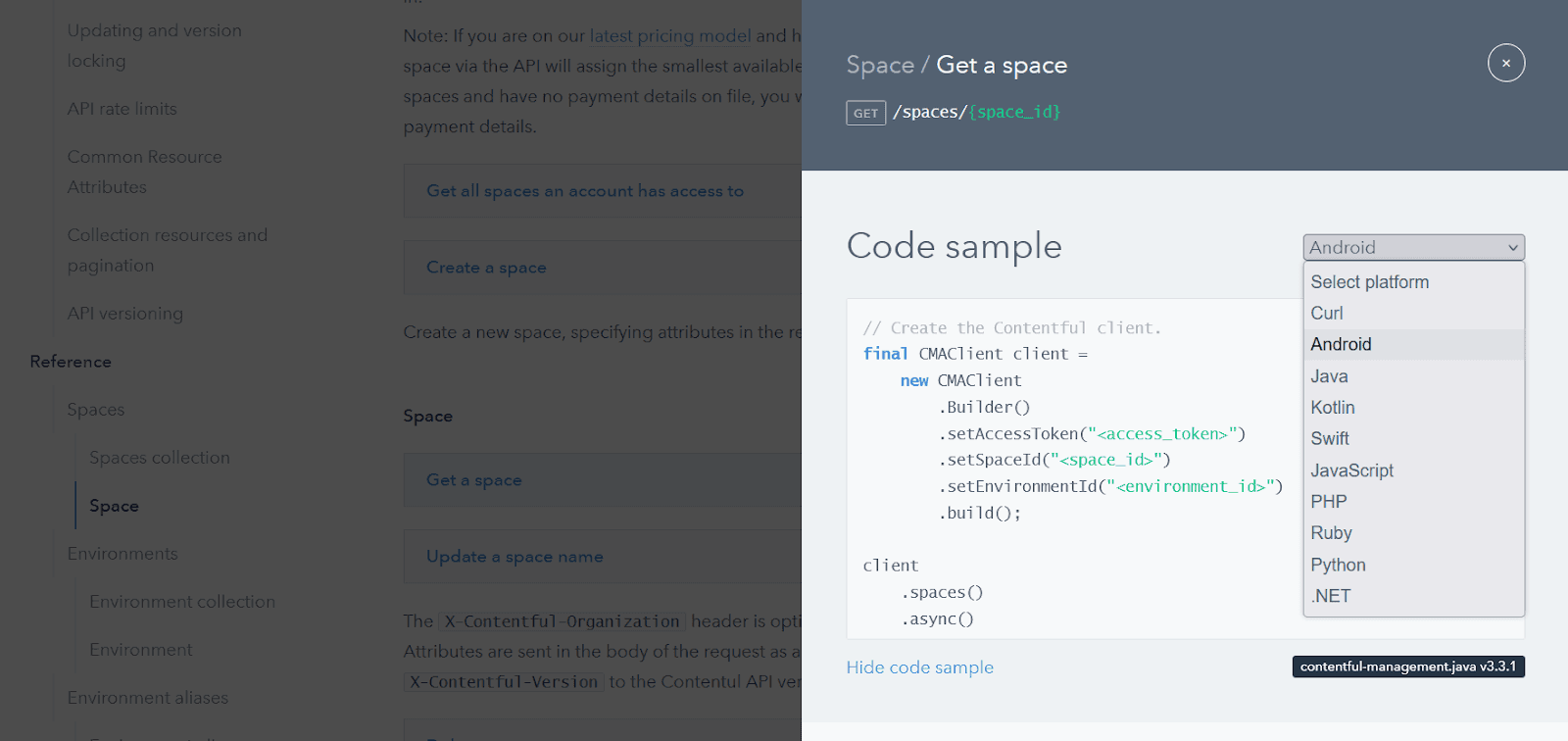 Contentful, a content management system, designed its API references in a very convenient and practical way.