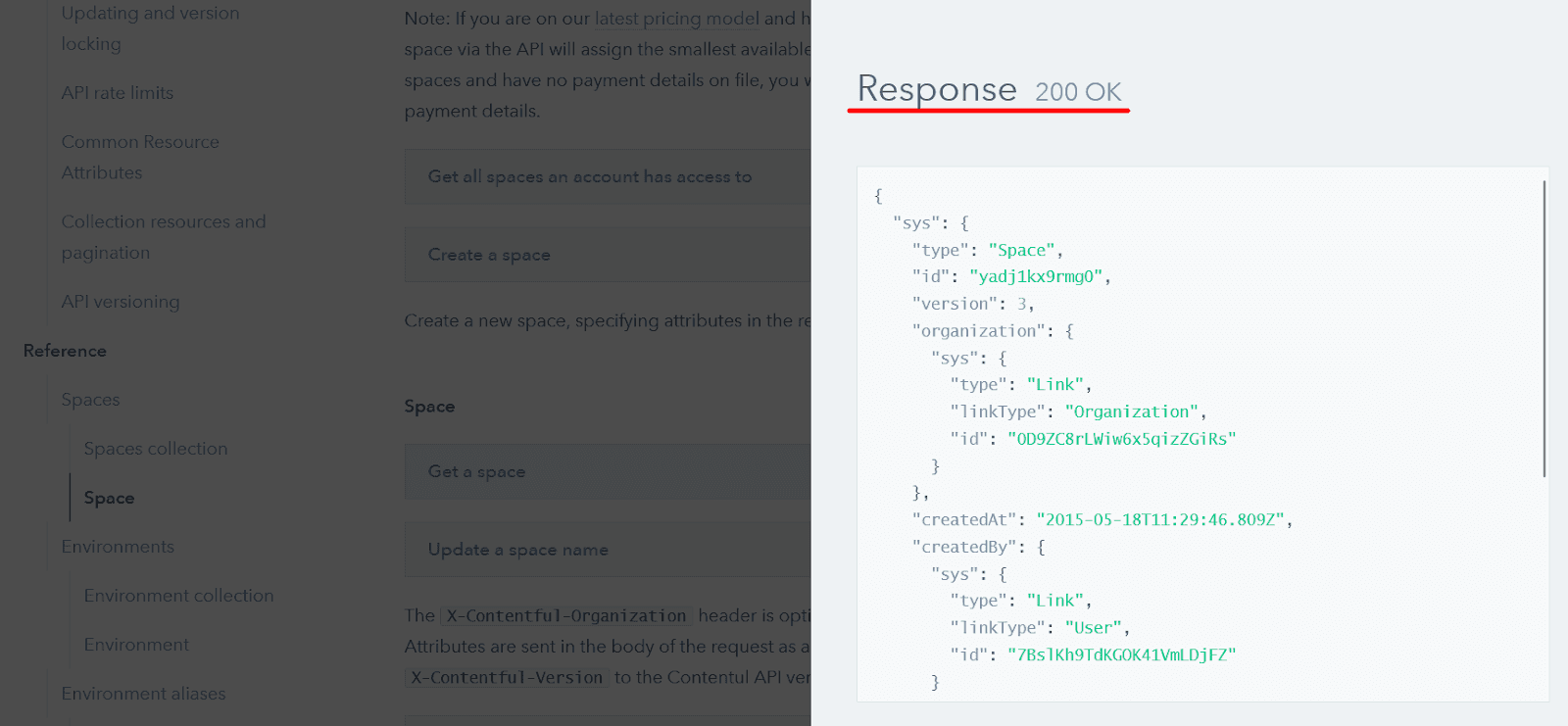 Finally, Contentful’s API reference provides developers with data about the response, as you can see below.