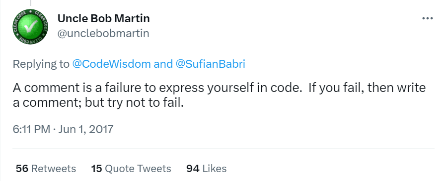 So, to clarify, we’re not suggesting that you should never write code comments.