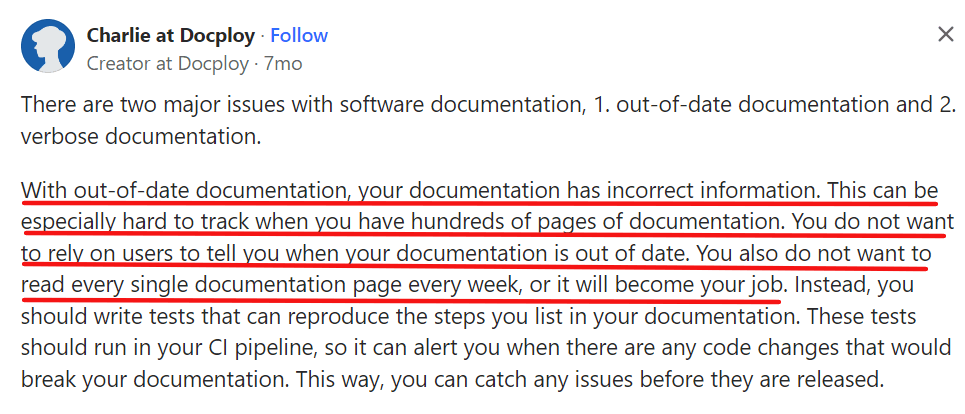 It’s an excellent solution for keeping developer documentation fresh and relevant.