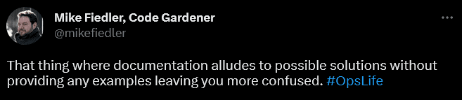 This tweet from software engineer Mike Fiedler can give you an indication of how important code examples are to developers.