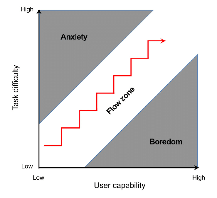 Flow is a state in which a person is completely focused on a single task that is challenging enough not to be boring but not that difficult to induce anxiety.