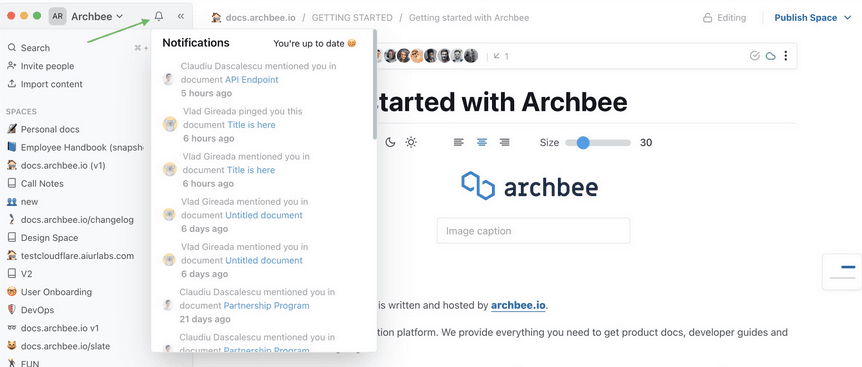 Archbee is an all-in-one documentation workspace for both customer-facing knowledge bases and internal docs. It’s built to keep collaboration in the document, so teams can work together whether they’re online at the same time or not.