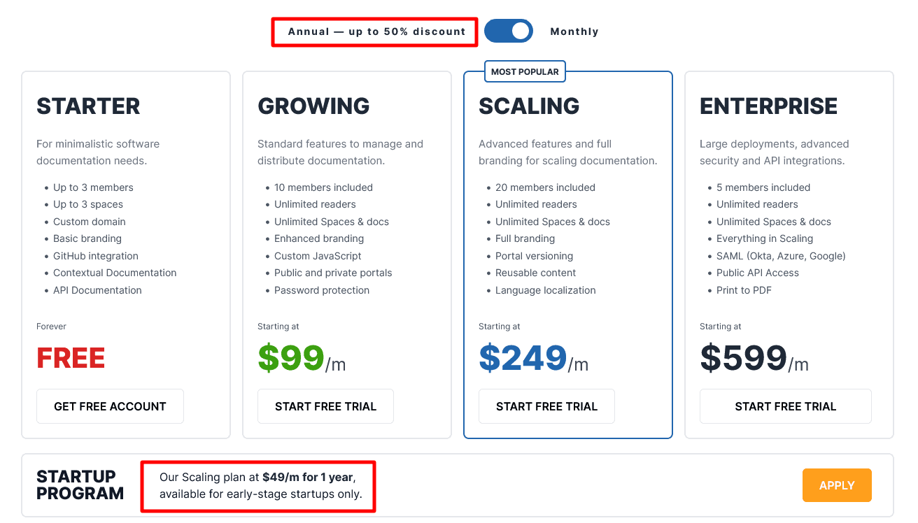 Also, the Scaling plan, which is the most popular, is available at a special price for early-stage startups.