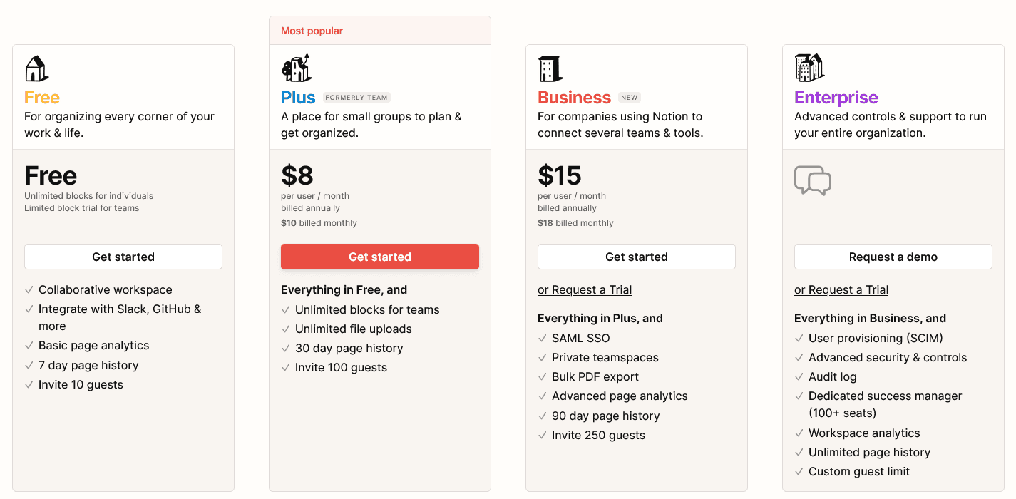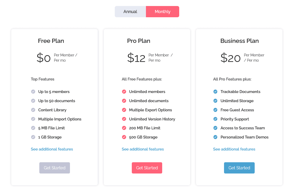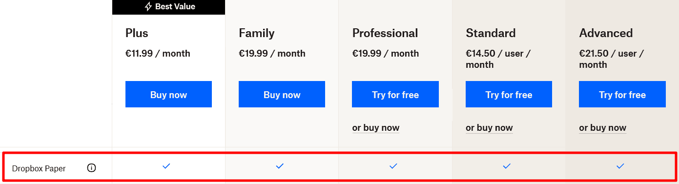 Dropbox Paper is also tied to the Dropbox product with pricing plans.