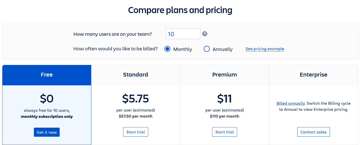 In other words, the price of one plan per person isn’t the same if you have, for example, ten or 100 team members.