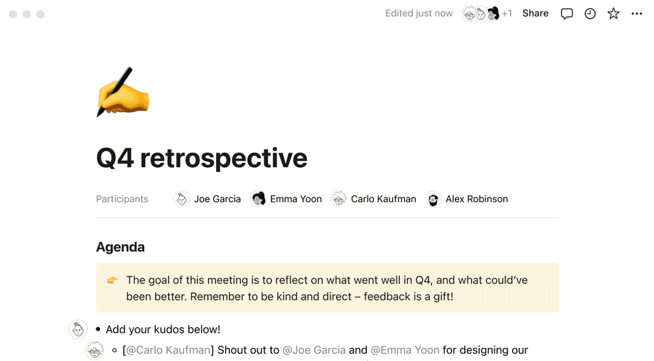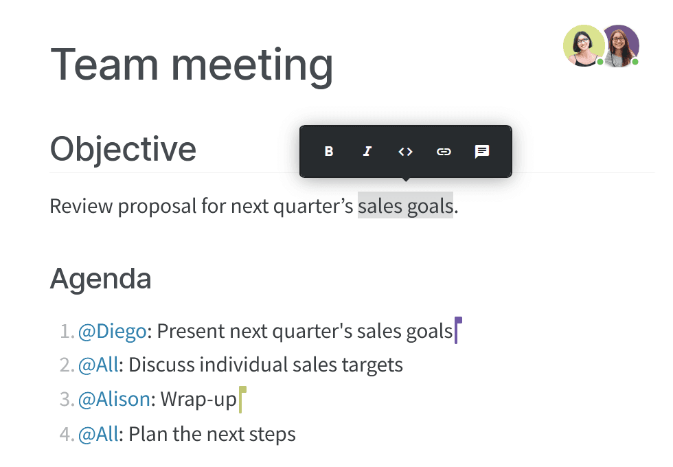 - Asynchronous friendly: Teammates can review and contribute without being in the doc at the same time.