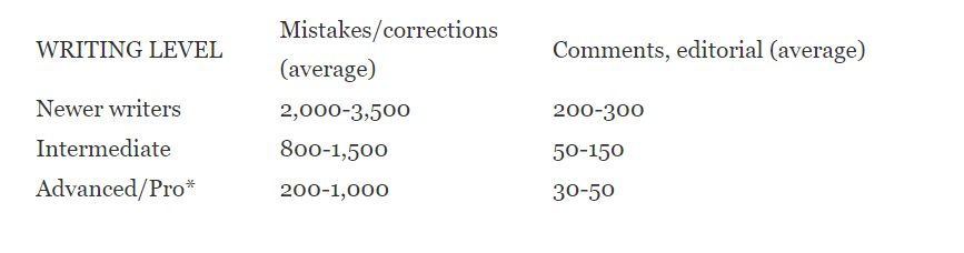 In his work as a copyeditor, he has been tracking the number of mistakes writers make and never catch while self-editing. These were his findings (based on 80,000-100,000-word novels):