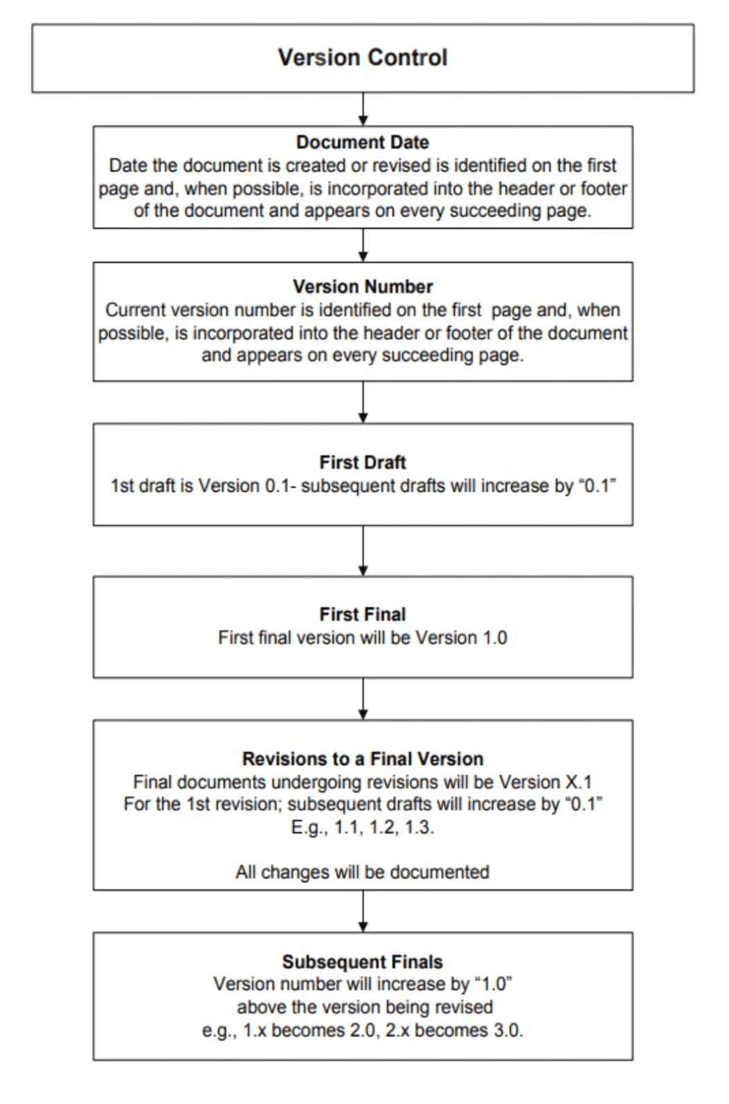 Only the final document versions are named in the x.0 format (e.g., version 1.0, version 2.0, etc.). When making minor revisions, it’s better to follow the 0.x format.