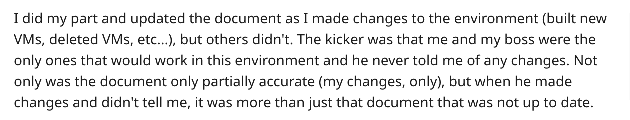 Although the Reddit user thought the documentation was up-to-date, there were actually several inconsistencies—simply because they weren’t notified of the new document versions.