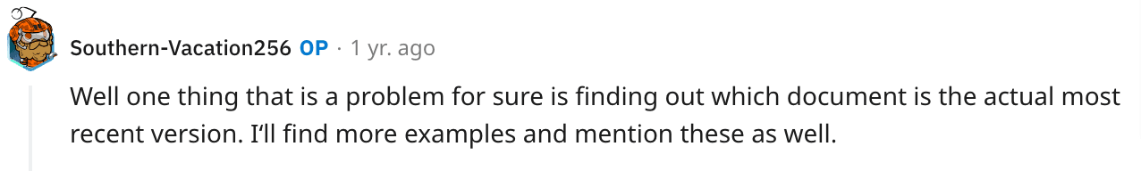 Considering all these iterations, it can be challenging to identify the most recent document version. This is a significant issue—one that was also discussed in a recent Reddit thread.