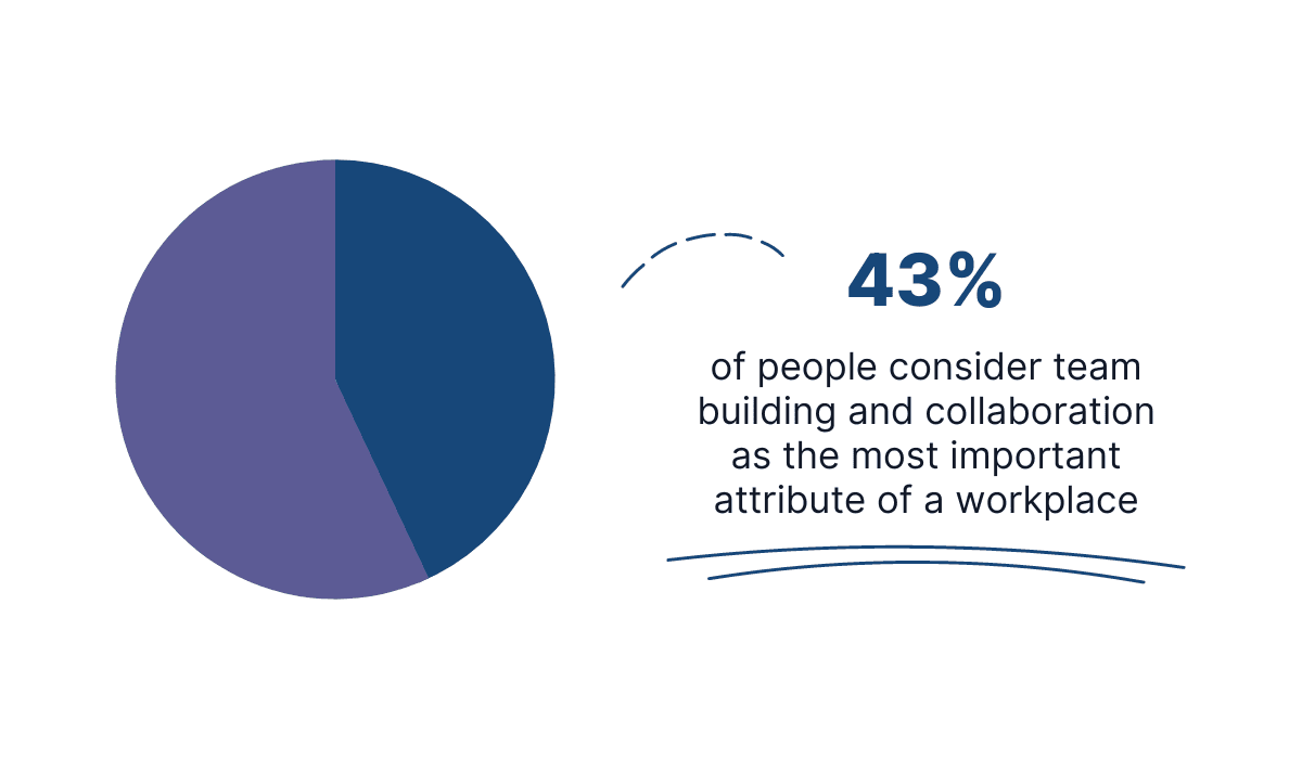 According to Gensler’s survey, collaboration is even more important than supporting health and well-being in the workplace, which only 34% of respondents considered a priority.