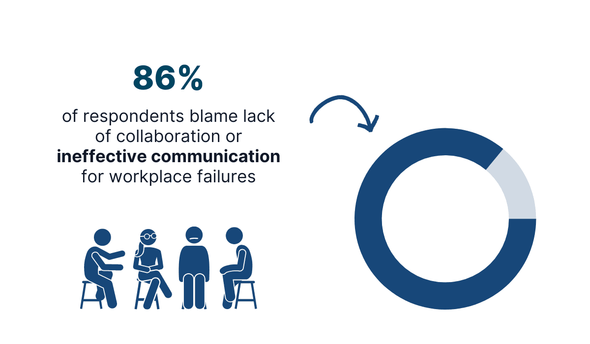 According to the data from the Fierce survey, 86% of workers from various industries point out ineffective communication as a reason for workplace failures.