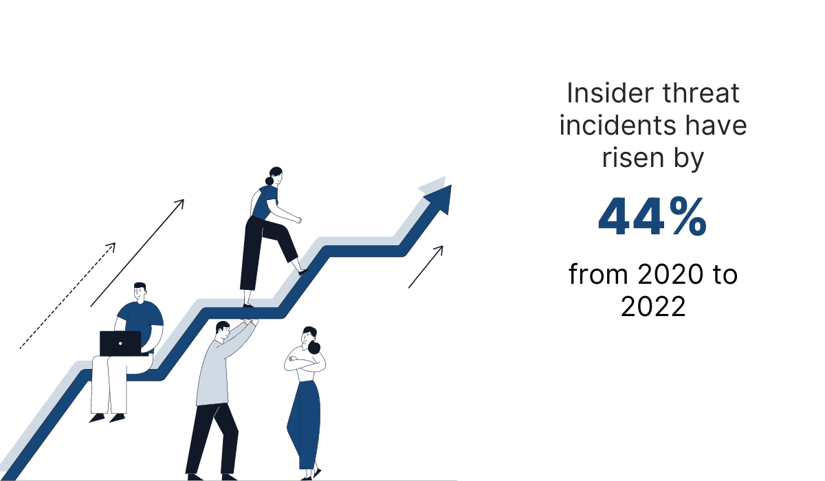 According to data from the Ponemon report, the risks that come from within the organization are on the rise; between 2020 and 2022, insider threat incidents have risen 44%.