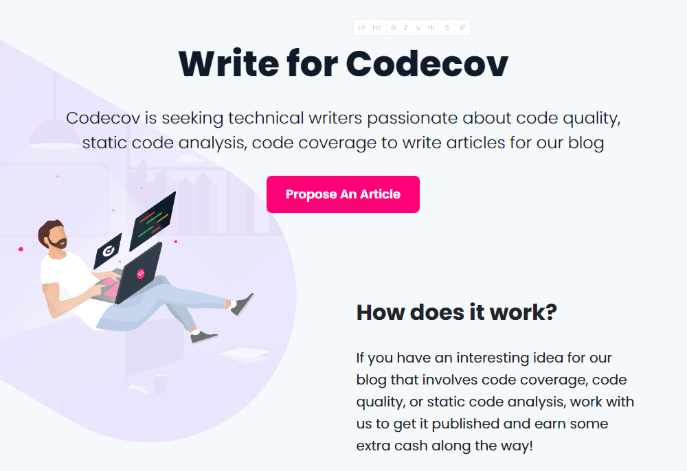 For instance, Codecov, a code analysis company, is constantly on the lookout for contributors to enrich their blog.