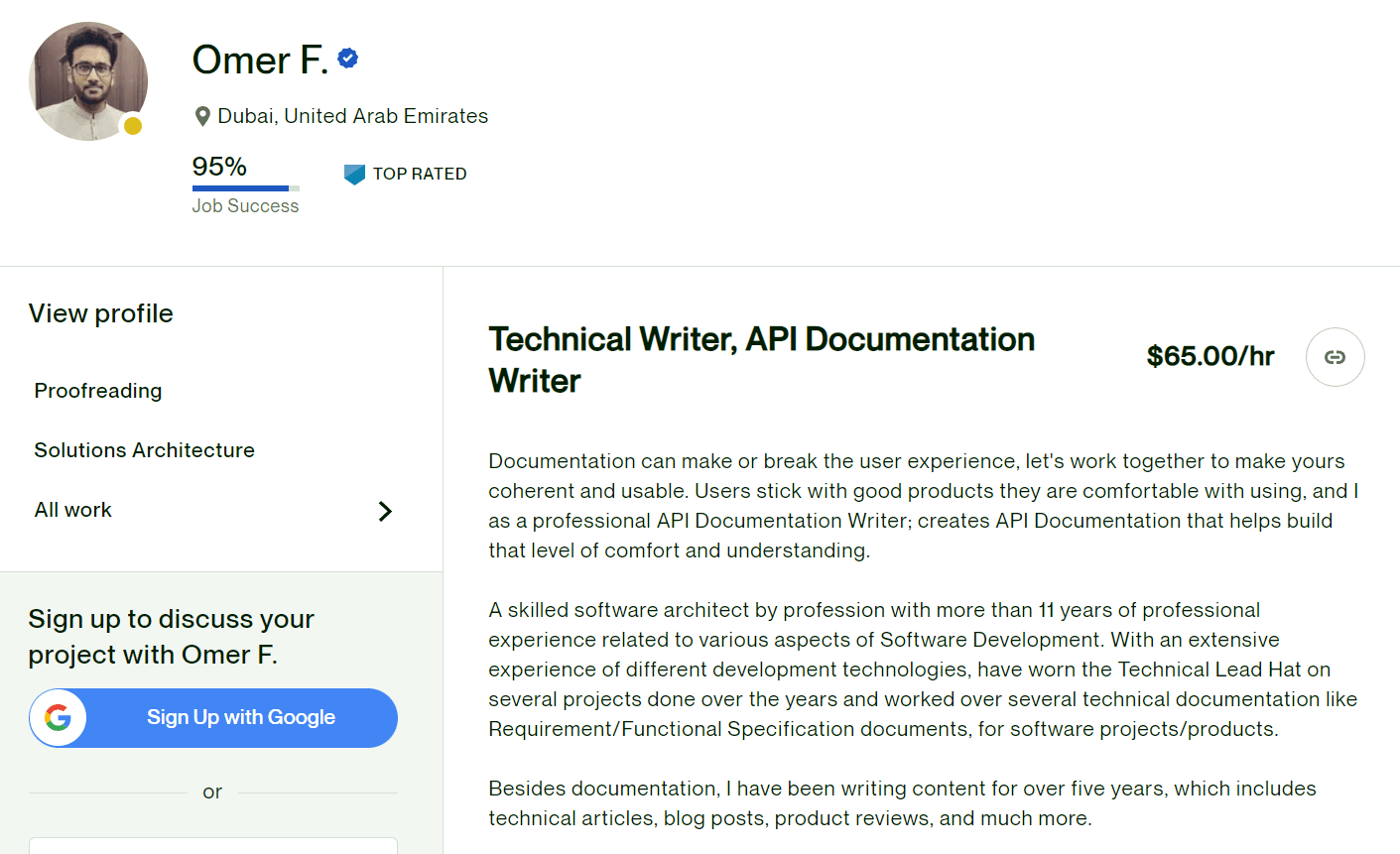 You should note that he’s one of the top-rated tech writers on the platform, making his rates higher than average.
