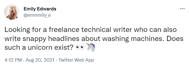 That’s why this Twitter user, whose company needs technical content about washing machines, knows their chances of finding a well-versed freelancer are slim.